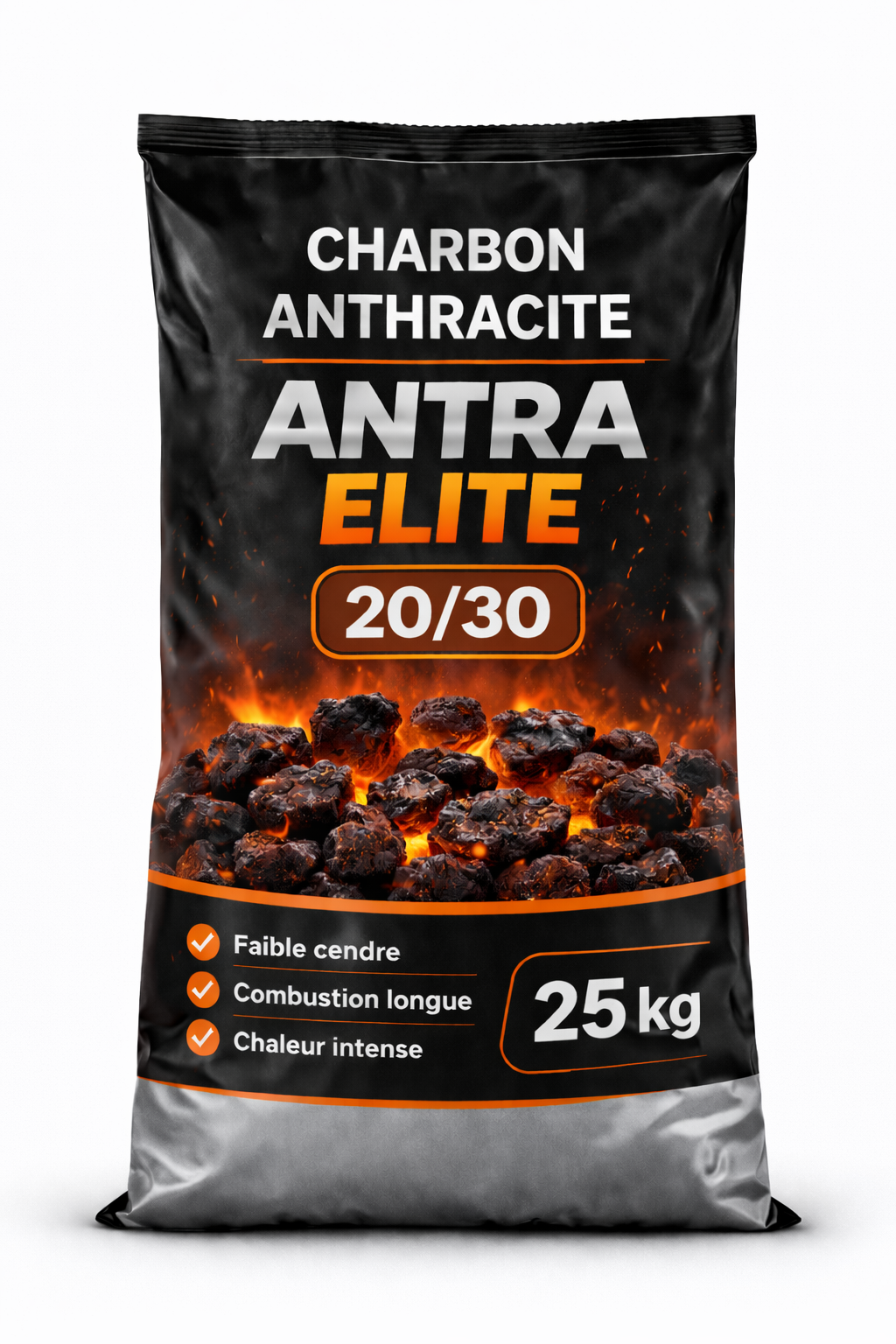 CHARBON ANTHRACITE 20/30 – ANTRA ELITE – 500 kg – 20 sacsPalette de charbon anthracite ANTRA ELITE 20/30, composée de 20 sacs de 25 kg (500 kg).Format pratique avec combustion longue et chaleur constante. 497€ TTC Quantité: Ajouter au panier?? Le format idéal pour un besoin modéré?? Plus avantageux en palette 1T?? Chaleur intense et constante?? Format pratique et facile à stockerLe charbon anthracite ANTRA ELITE 20/30 offre une combustion lente grâce à son calibre plus gros, idéal pour une utilisation régulière sans stock important.?? Contenu20 sacs de 25 kgTotal : 500 kgCalibre : 20/30 mm?? Avantages? Combustion lente? Chaleur durable? Peu de cendres? Facile à stocker? Format pratique? PerformanceCombustion : longueRendement : élevéChaleur : stable?? Utilisation?? Convient pour :poêles à charbonchauffage domestique?? LivraisonLivraison à domicile sur palette.?? Conseil pro?? Pour un meilleur prix, optez pour la palette 1T.?? TABLEAUCaractéristiqueDétailTypeAnthraciteCalibre20/30 mmConditionnement20 sacsPoids total500 kgSac25 kgCombustionLongueProduits associés BOIS D’ALLUMAGE – Filet ±25 L – Bois sec prêt à l’emploiFilet de bois d’allumage sec et prêt à l’emploi, idéal pour démarrer rapidement votre feu.Contenance ±25 L.A partir de 5,3€ TTCAjouter au panier BUCHES DE BOIS – Filet ±25 L – Bois prêt à l’emploiFilet de bûches de bois de chauffage prêt à l’emploi, en format ±25 L.Idéal pour un usage occasionnel, un petit feu ou en dépannage.A partir de 7,5€ TTCAjouter au panier